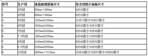 各面板制造商的生产能力主要是由其生产线的规模决定的。一般按照玻璃基板尺寸的大小划分生产线属于哪一代,具体分类如表1所示。