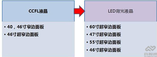 逐渐淘汰CCFL背光源,全部更新为LED背光,分辨率达到全高清,向超高清发展。如图2、图3所示。