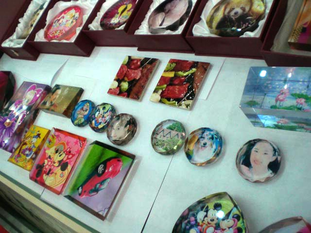 橱柜门玻璃门大型喷绘机,玻璃大型喷绘机/橱柜门彩绘机可在不规则曲面上喷印图片。如:手机、电话机、U盘、玻璃杯、花瓶、钢笔等;可喷印圆柱体物体。如:玻璃杯、花瓶、钢笔等; 物体高度为:0~17CM; 免中间耗材。如:转印纸、水晶胶水、水晶胶片、高温胶布、热转印设备; 产品适用范围: 各加盟店,相馆,婚纱影楼,景点,医院,学校等