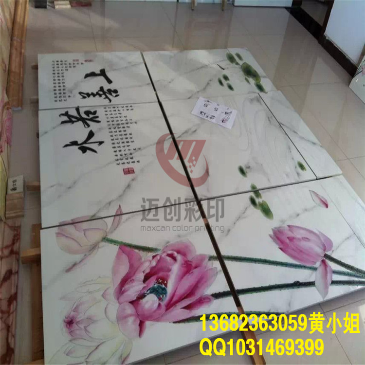 2、工艺是把客户要加工的图案在雕刻机上对瓷砖表面喷砂机喷砂图案,这是雕刻图案的一个重点步骤。喷完砂后再把图案输入彩绘机电脑对好位直接用机器上颜色,也就是通过电脑和彩绘机设备把图案输出到瓷砖上彩印。这就是很流行的最新雕刻瓷砖背景墙的加工流程。