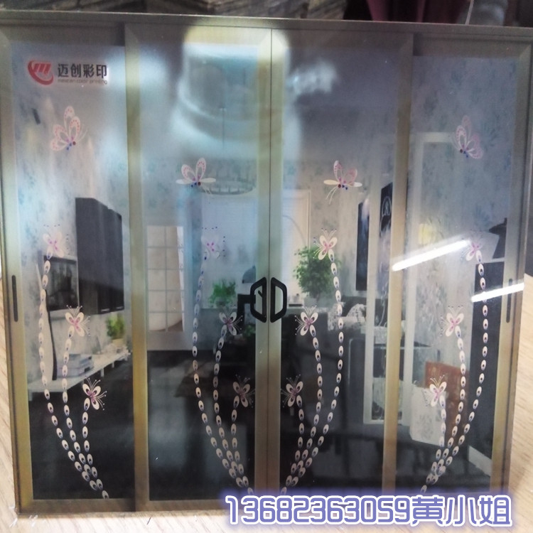 深圳迈创玻璃移门印花机可以同时打印白墨和彩墨、可以打印浮雕效果、即打即干,可以打印各种各样的材质。