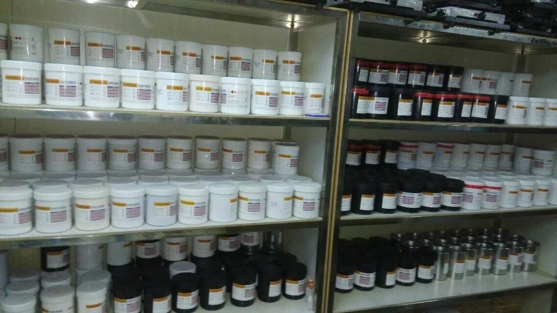 4、固化剂:双组份使用,添加量为15%-20%,增加固化剂的添加比例,可以加强附着力,但会减弱油墨色浓度及减慢油墨干燥速度,当固化剂添加比例超过20%时,有必要进行烘烤干燥。