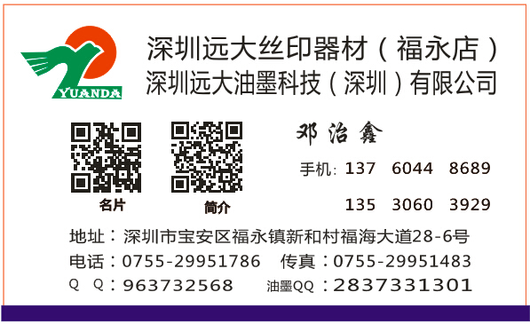 免责声明:以上信息由会员自行提供,内容的真实性、准确性和合法性由发布会员负责。集萃丝印特印网对此不承担任何责任。