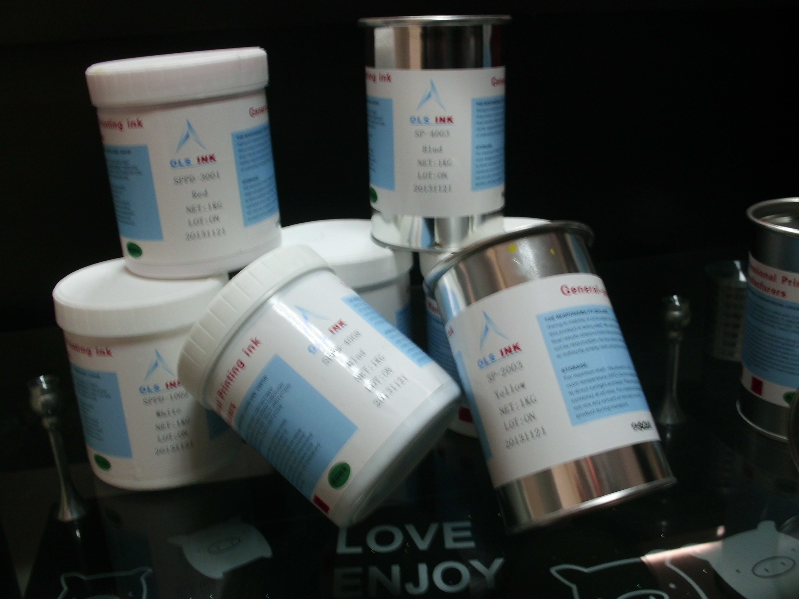 单组份自干玻璃系列油墨【一,油墨使用技术参考】单组份免烤丝网印刷油墨是为是为了不具备烘烤条件而又不用外加固化剂而研制的单组份高性能油墨。油墨使用方便,不需加固化剂,不需烘烤,即可获得优异的附着力。具有平光、附着力佳、耐冲压、耐酒精等特点。1.适用范围:铁、铝、合金、玻璃、陶瓷、电镀、石材、阳极氧化铝表面及烤 (喷)漆面等2.稀释剂:用本公司S-03稀释剂3.固化剂:可添加TA-9154硬化剂10%增加附着力,提高墨膜硬度。4.胶刮硬度: 70-80度为宜,另外角度在60-70度为最佳。5.网目:适合于100-420网目印刷6.用量:用300目网版每公斤约可印30平方米.7.干燥方法: TA系列是属于自然挥发干燥的油墨,墨层表干时间5-10分钟:实干时间在24小时以内. 48小时后达到最佳性能 1.或添加TA-9154硬化剂10%可增加附着力,提高墨膜硬度。2.烤箱90℃烘烤20分钟佳能更优。 【二,测试方法(完全干燥后)】1、划百格后用3M胶纸剥离最少3次以上,无掉墨现象.2、用浸有纯度99%的酒精的棉球,500G力在油墨表面来回擦拭200次无脱色。 【三、油墨使用注意事】 1.试印确认符合要求后再批量生产。 2.做好被印物的表面清除油脂及杂质工作,以促进附着效果。 3.需要套色时,应在前颜色表干或硬干后再进行套色工作。 4.附着力、硬度、耐酸性、耐油性、耐去渍油性、抗划伤性、耐磨性等性能的检测,需要墨层完全固化后方可检测。 5.未经允许情况下,不得将本系列油墨与其它类型油墨混用及配色。 6.添加固化剂后的使用时限:加入固化剂后的油墨使用时间为4~6小时,环境温度越高使用时间越短,剩余油墨不可回收。 【四、油墨使用安全规则】 1、油墨,稀释剂使用及储存时严禁烟火。 2、使用时注意施工场所的通风状况良好。 3、尽量避免皮肤直接接触。 4、本品不慎溅入口、鼻、眼、耳内,应用大量水清洗或直接求助医生。 5、对本品过敏者,使用前应涂覆一层皮肤扶肤膏或戴不渗透性手套。