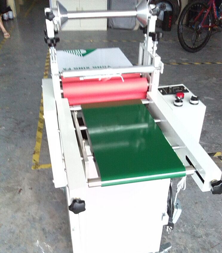 输送带覆膜机结构:该系列机器由上下橡胶辊、机架、输送平台、动力传动及控制装置、托膜架等组成,具有覆膜平整、无皱褶、无气泡、操作简单,使用寿命长等特点。