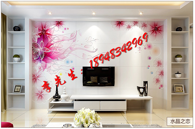 1、平面精雕瓷砖背景墙:A/仿古砖直接幻彩B/抛光砖幻彩+水晶