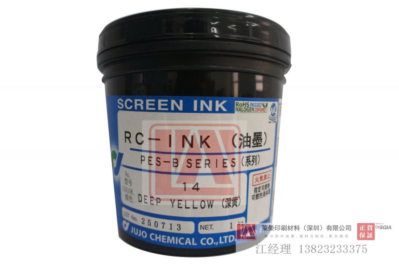 需要进一步提高附着性的场合,请添加1-3%的JAR-18(增强附着剂)。搅拌时请注意在容器边上或搅拌刀上不要残留添加剂。 搅拌后立刻印刷的话,会产生印刷不均匀的现象,请安放20分钟后再进行印刷。此时油墨成为双组份型,产生了适用时间的问题。使用之时请留意附着性。(通常在8~12小时以内可使用)