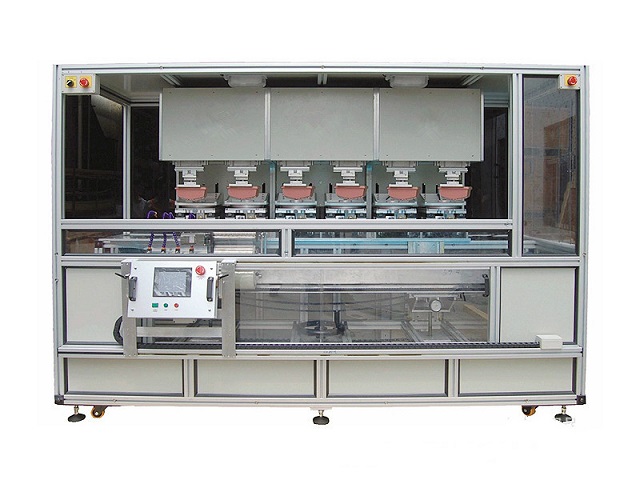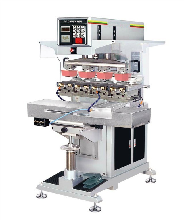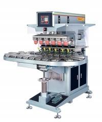 | 隔音箱震动盘移印机带烘干线TM-M1AY大型单色移印机产 品 简 介 TM-M1AY大单色移印机是我公司精心设计的一种通用型印刷机。能广泛应用于日常用品、玩具、电子、电器、塑料、皮革、金属、玻璃、轻工业及食品包装等各种行业中。一、 此印刷机具有以下特点:1、 各位置均为电眼感应,位置准,性能优。2、 定位准确。工作台前后、左右、角度都可以微调和固定,准确而稳定。3、 性能稳定,整台机器采用世界先进微型电脑控制器控制。4、 根据客户需要,预置两个功能程序,单周期印刷和全自动印刷。5、 采用台湾亚德客公司最新气动元件,动力畅顺强劲,经久耐用。6、 特殊减震装置,机器运作非常平稳;调速刮刀,性能优越。7、 合金铸铝机身结构,轻巧坚固,精密结构效率显著。8、 操作面板采用灵敏轻触制,可直接选用移印功能反应敏捷使用方便。二、 技术参数: 1、印刷颜色 1色 2、单周期 可以 3、持续运动 可以 4、项目计数 可以 5、速度调节 可以(0~9可调) 6、各部位延时 可以(0~9可调) 7、印刷速度 1600次/小时 8、最大钢板尺寸 200mmX300mm (8寸X12寸)标准油盘100mm*200mm 9、最大印刷面积 175mmX275mm (7寸X 11寸)标准印刷尺寸75mm*175mm 10、印刷工件高度 200mm 11、工件上胶头上落(可调节) 10~60mm 12、钢板上胶头上落(可调节) 10~60mm 13、胶头前后行程 200mm 14、驱动 气动 15、控制系统 微型电脑 16、控制电压 12VDC 17、电源电压 220VAC / 1相位 18、连接负荷 20W 19、气动供应 6bar 20、机身外形尺寸 910mm X 630mm X 1470mm 21、重量 145KG 三 、 机器各气缸压力参数表:气缸名称规 格生产厂商压 力4bar5bar6bar 胶头上落气缸ф63X80台湾上升压力112.1kgf140.2kgf168.2kgf下落压力124.7kgf155.9kgf187.0kgf胶头前后气缸ф40X200台湾前进压力50.3kgf62.8kgf75.4kgf后退压力44.1kgf55.2kgf66.2kgf刮刀气缸ф50X10台湾上升压力66kgf82.5kgf99kgf刮油压力78.5kgf98.2kgf117.8kgf四、 如果客户需要, TM-M1AY大单色移印机型移印机可以改为 TM-M1AYY大单色移印机型移印机,即将油盆刮刀部分改为密封油盅部分。 TM-M1AY大单色移印机油盅式座台单色移印机其主要特点及性能参数如下:1、油墨利用率高 98.5% 2、工作环境好 开油水及油墨挥发小 3、油盅大小 ф135 4、钢板尺寸:(可以用薄片钢板) 150mm X 300mm(6寸X 12寸) 5、印刷面积 100mm X 120mm或ф120 6、油盅行程: 150mm 五、 机器操作安全性能: TM-M1AY大单色移印机型移印机符合最新的工程式样,如按要求使用绝对值得信赖。 机器装有紧急开关:当遇到紧急事情时按下紧急开关,则机器马上断电。回到起始位置,当事情处理好后扭出紧急开关,便可以安全启动恢复正常。 六、注意事项: (1)、当机器需要移动或修理时,必须将电源和气源切断。 (2)、当调整或清洗油盅时,请按步骤操作。 (3)、增强防火意识,配备消防器材。 | |