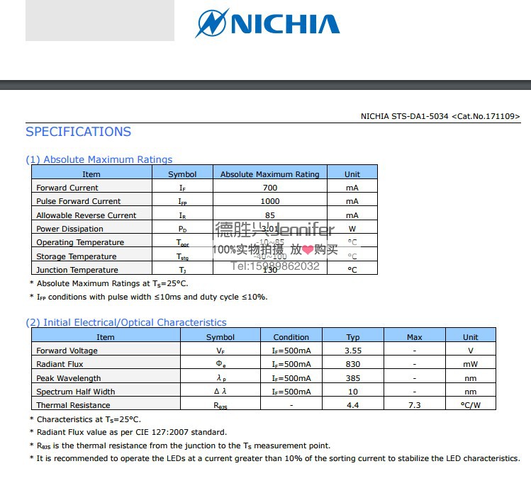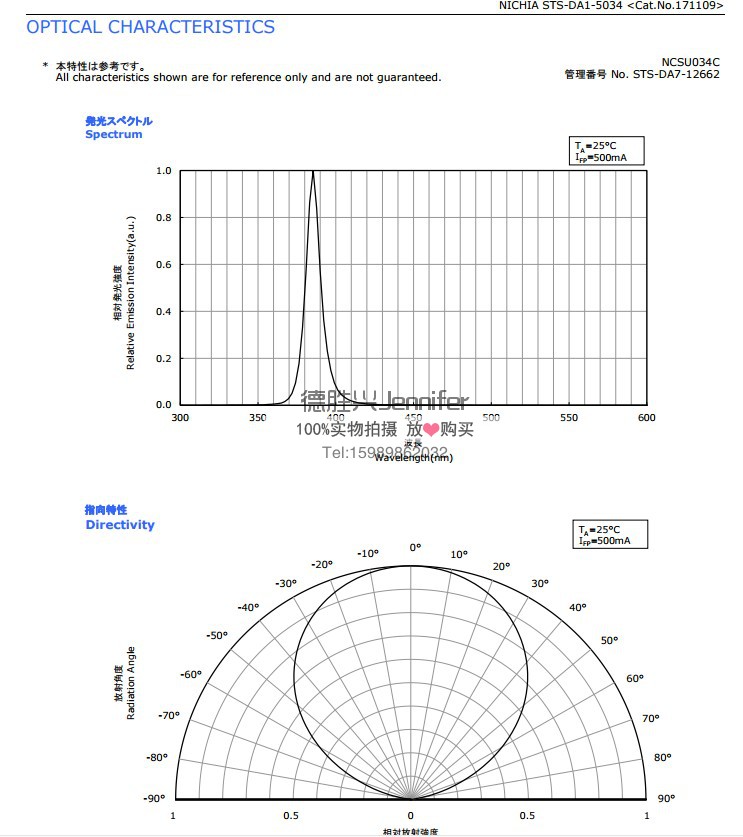 385nm UV LED,日本日亚NCSU034C 385nm紫外线灯珠 现货 原厂直供
