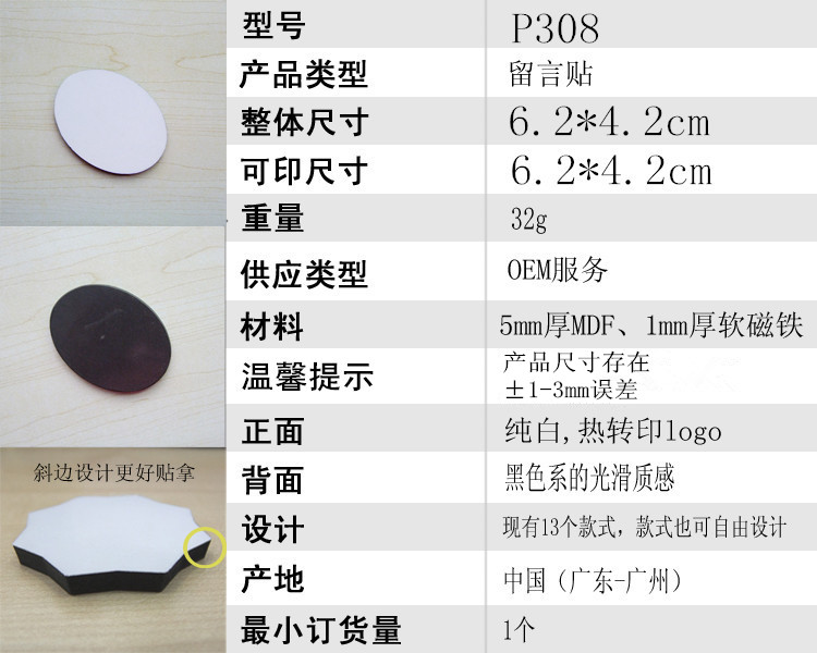 > 热转印空白耗材厂家 冰箱贴 MDF磁力冰箱贴P308