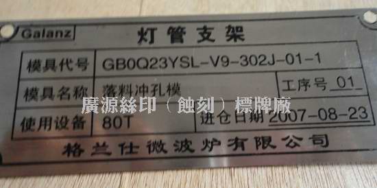 你好,本公司专业:丝印(蚀刻)金属标牌、铭牌、机械面板、标识牌、指示牌、门牌标牌、推拉标牌..  『详细信息