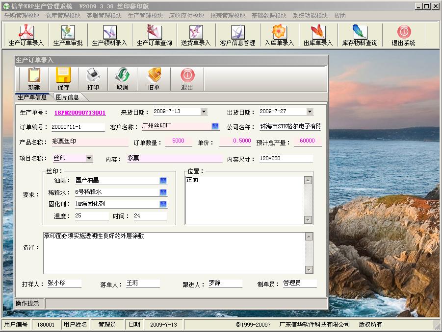 《信华丝印移印生产管理软件》针对丝印移印行业的“订单数量多、交货期短”的行业特点,开发的一.. 『