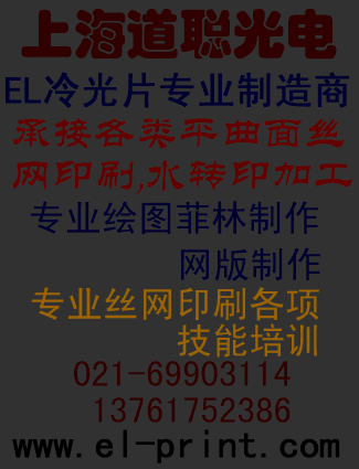 上海道聪光电科技有限公司是一家专业平曲面丝网印刷,水转印,丝印加工的综合性工厂。丝印范围广,.. 『