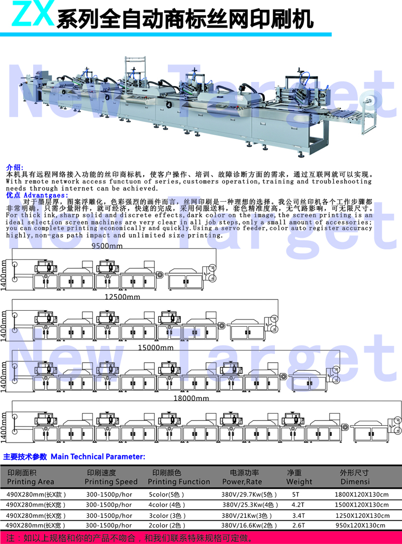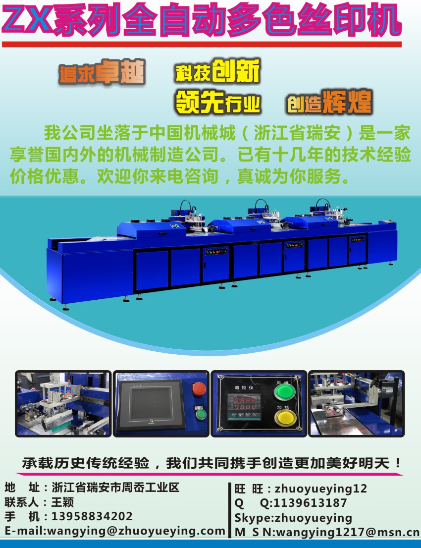 一次性多色完成,解决了印刷过程中的印刷物收缩而带来的套印困难,并真对不同油墨可选择普通油墨、热固油墨、uv 油墨等多种干燥方式。并可大量减少人工,厂地面积,降低废品率,提高丝网线精度。