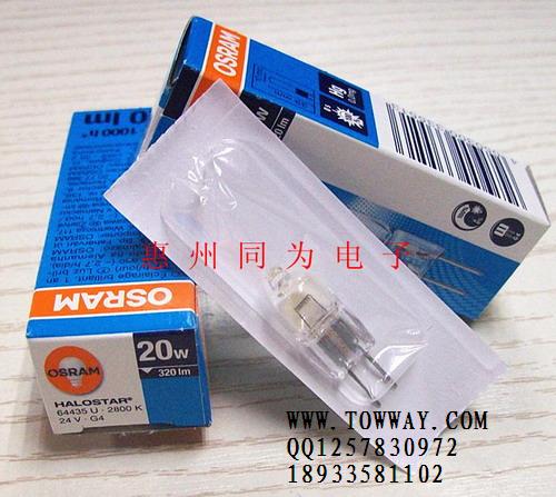 欧司朗OSRAM 64435U 24V20W投影仪专用灯泡惠州同为电子公司是飞利浦,德国OSRAM灯泡特种光源优秀供应商常年提供荷兰原装进口PHILIPS灯泡,德国进口OSRAM灯泡,日本EYE灯泡,FUJI 灯泡,美国GE灯泡,灯杯,灯管,广泛用于投影仪/舞台/医疗/显微镜/各种检查设备/户外和室内照明。