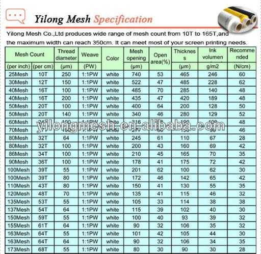 安徽利辛亿隆筛网有限公司专业生产高质量的印刷丝网和过滤用网,位于丝网之乡-安徽利辛,占地10,000多平方米。公司引进了世界上先进的生产设备,拥有瑞士片梭织机P7100/7150、德国产智能型电子分条整经机、卷验喷码机、自动热定型机、水洗机和先进的物理检测仪器等设施。织机宽幅有33CM/360CM,公司生产的产品规格齐全,精度高,主要规格有25目-420目/英寸,成品最大宽幅达350CM,年产量高达300万平方米。